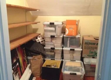 A truck has been rented, a bunch of our stuff donated to Boomerang’s. Room by room, my familiar apartment has been disassembled and put in boxes. Over the weekend I posted these before and after pictures of the closet we used as a reading room. We’ve made progress, but there’s still quite a bit to do before August 1st.